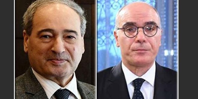 أكد وزير الخارجية والمغتربين الدكتور فيصل المقداد ووزير الشؤون الخارجية والهجرة والتونسيين في الخارج نبيل عمار في اتصال هاتفي اليوم أهمية تعزيز العلاقات الثنائية، واستمرار التشاور والتنسيق بين سورية وتونس في مختلف المجالات.