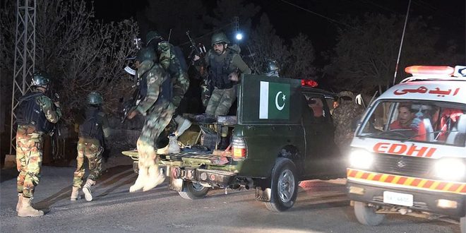 ونقلت رويترز عن الجيش الباكستاني قوله في بيان اليوم: إن مسلحين أطلقوا النيران من البنادق، وألقوا قنابل يدوية، وأطلقوا صواريخ أثناء مهاجمتهم قاعدة عسكرية بإقليم بلوشستان، ما أسفر عن مقتل أربعة جنود على الأقل، وإصابة خمسة آخرين بجروح خطرة.