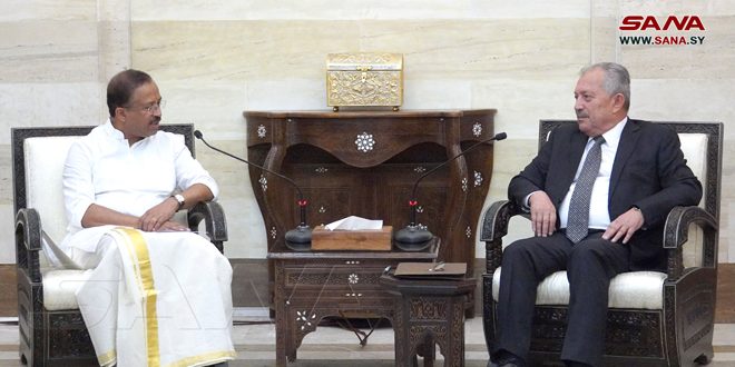 بحث رئيس مجلس الوزراء المهندس حسين عرنوس مع وزير الدولة الهندي للشؤون الخارجية ف.موراليدهاران خلال استقباله له اليوم ملف العلاقات الاقتصادية بين البلدين وسبل تعزيزها وفتح آفاق جديدة أمامها، بما يعكس عمق العلاقات التاريخية التي تربط بين الجانبين على الصعيدين الرسمي والشعبي.