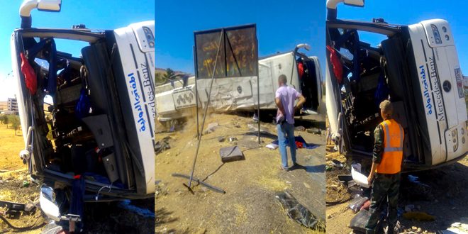 توفي 4 أشخاص وأصيب 28 آخرون اليوم، نتيجة تدهور بولمان على أوتستراد (دمشق- حمص).