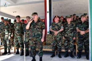 في إطار عملية التدريب والتأهيل المتواصل في الجيش والقوات المسلحة قام العماد علي محمود عباس نائب القائد العام- وزير الدفاع، يرافقه عدد من ضباط القيادة العامة للجيش والقوات المسلحة، بتخريج دورة صاعقة من الطلاب الضباط الصف المتقدم من الكلية الحربية باختصاصاتها المختلفة، إضافة إلى طالبات من الكلية العسكرية للبنات.
