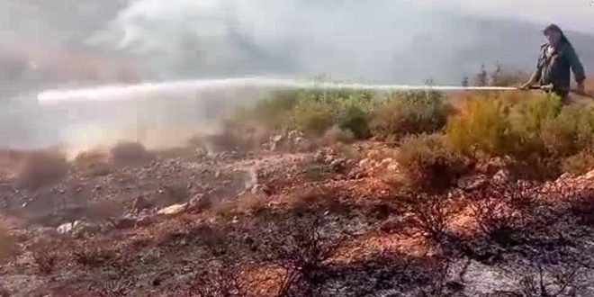 وكان اندلع حريق ضخم أمس في أعالي الحراج الجبلية الممتدة ما بين قرى طاحونة الحلاوة وفقرو وأبو كليفون ونبع الطيب بمنطقة الغاب بريف حماة الغربي، وتمت السيطرة على 90 بالمئة منها، ويجري التعامل مع النيران في أطراف الحريق للعمل على إخمادها بشكل نهائي.