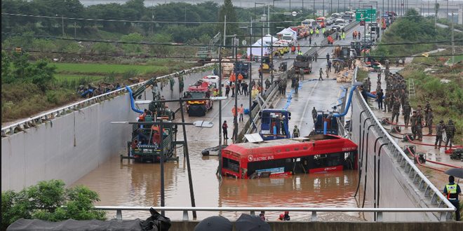 وأصدرت إدارة الأرصاد الجوية الكورية تحذيرات من هطول أمطار غزيرة، متوقعة هطول مزيد من الأمطار حتى الأربعاء المقبل، وأكدت أن الأحوال الجوية تشكل خطراً جسيماً.