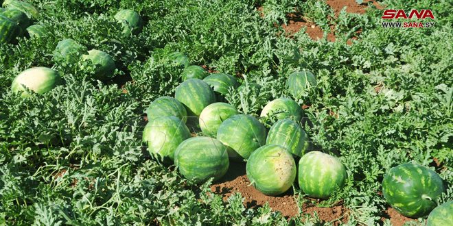 وبين رئيس دائرة الإنتاج النباتي في مديرية الزراعة المهندس جلال بلال في تصريح لمراسل سانا أن محصول البطيخ الأحمر والأصفر المنتج في المحافظة تميز بالوفرة خلال الموسم الحالي في ظل استمرار الفلاحين بتسويقه في أسواق المحافظة، مشيراً إلى أن محصول البطيخ من المحاصيل الرئيسية للخضار الصيفية إلى جانب محصول البندورة، حيث يقبل الفلاحون على زراعته في المناطق التي تتوافر فيها مصادر مياه.