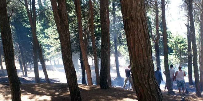 أخمد عناصر الدفاع المدني في حمص اليوم بالتعاون مع الأهالي حريقاً اندلع في غابة جبل الخضر في منطقة شين بريف حمص الغربي.