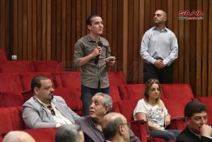 من جانبه الإعلامي الروسي ميكائيل زفينتشوك لفت في مداخلة له إلى أن العدو في بداية الحرب على سورية كان واضحاً، وانتقل اليوم إلى مرحلة الحصار الاقتصادي والتضييق والعقوبات، مشيراً إلى أن سورية وروسيا في خندق واحد، وهذا ما أظهرته المواجهة العسكرية في البلدين.