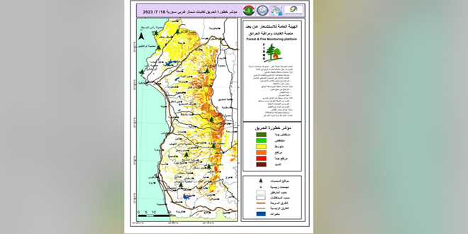 وبينت المنصة أنه يتم إعداد الخرائط في الهيئة العامة للاستشعار عن بعد بالتعاون مع وزارة الزراعة والإصلاح الزراعي “مديرية الحراج” والمديرية العامة للأرصاد الجوية.