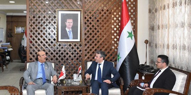 بحث وزير الصناعة الدكتور عبد القادر جوخدار مع السفير المفوض فوق العادة لمملكة البحرين في سورية وحيد مبارك السيار سبل وآفاق التعاون الصناعي والتجاري بين البلدين.