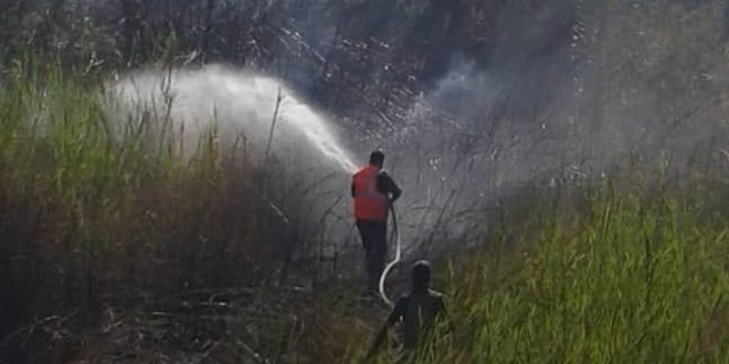 أخمدت منظومة الإطفاء حريقاً في أراض زراعية في منطقة رأس شمرا في اللاذقية.