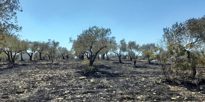 وأوضح رئيس دائرة الحراج المهندس جابر صقور في تصريح لمراسل سانا أن كوادر وآليات الإطفاء في الدائرة بمؤازرة فوج الإطفاء تمكنوا من السيطرة على الحريق، الذي أتى على حوالي 50 دونماً من الأراضي المزروعة بالزيتون والحمضيات.