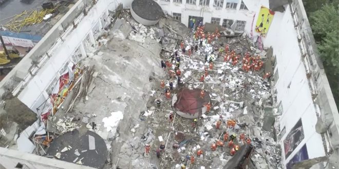 ونقلت شينخوا عن رجال الإنقاذ قولهم اليوم: إنه تم انتشال 15 شخصاً من تحت الأنقاض، ومن بين الضحايا تأكدت وفاة 11 على الفور فيما تم فحص الأشخاص الأربعة الباقين، وتبين أن إصاباتهم لا تهدد حياتهم.