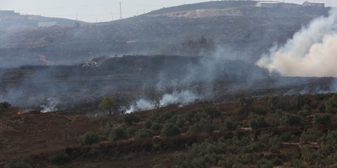 أحرق مستوطنون إسرائيليون اليوم عشرات الأشجار في أراضي بلدة بورين جنوب مدينة نابلس بالضفة الغربية.