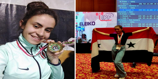 بدورها اللاعبة ميريا طحان 13 عاماً عبرت عن سعادتها بالإنجاز الذي حققته في البطولة العربية التي أكسبتها المزيد من الثقة بنفسها وبإمكانياتها لكونها كانت أصغر مشاركة، مشيرة إلى أن بداياتها كانت برياضتي السباحة والجمباز، ومنذ عام بدأت بممارسة القوة البدنية التي استحوذت على اهتمامها، حيث توجت بالمركز الأول على مستوى المحافظة والجمهورية لفئة الناشئات.