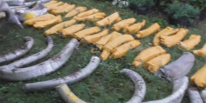 وقالت إدارة الحدود في بيان وفقاً لموقع ار تي: ” إن موظفي حرس الحدود عثروا على أكثر من 1.5 طن من أنياب فيل الماموث، وتمت مصادرتها “.