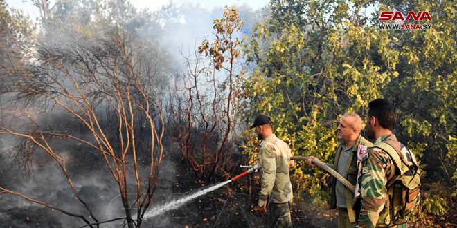 ولفت إلى مشاركة حوامات من الجيش العربي السوري والقوات الروسية الصديقة في عملية الإخماد خلال ساعات النهار لا سيما في المواقع التي لا يمكن أن تصلها فرق الإطفاء.