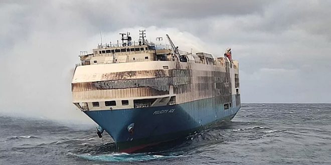 وأشار البيان إلى أن النيران لا تزال مشتعلة في السفينة (فريمانتل هايواي) المسجلة في بنما، على مسافة نحو 27 ميلاً بحرياً (أي نحو 50 كيلومتراً) شمال جزيرة أملاند الواقعة قبالة سواحل هولندا الشمالية، موضحاً أنه تم إجلاء كامل الطاقم، المؤلف من 23 شخصاً.