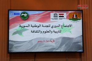 تفعيل المشاركات الإقليمية والدولية في المجالات المتعلقة بالتربية والثقافة والعلوم وانعكاسه على تطوير العمل المجتمعي وتحسين الفرص أمام الكوادر الشابة للمشاركة في المنح والمسابقات المعلنة من قبل منظمة الأمم المتحدة للتربية والثقافة والعلوم “اليونيسكو”، أبرز النقاط التي ركز عليها أعضاء اللجنة الوطنية السورية لليونيسكو خلال اجتماعهم اليوم في مبنى وزارة التربية بدمشق.