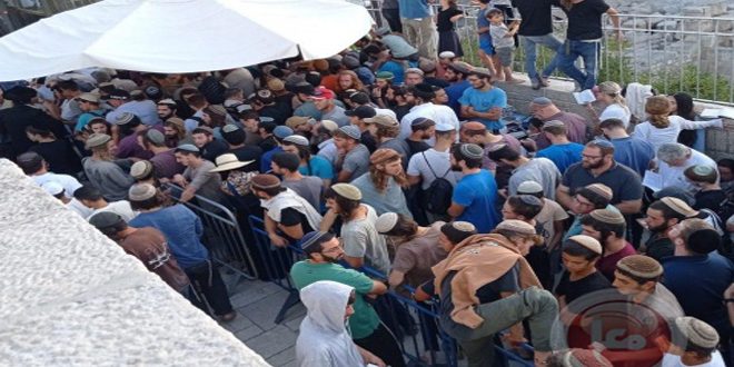 واقتحم آلاف المستوطنين الليلة الماضية ساحة البراق الملاصقة للحائط الغربي للأقصى، ونفذوا جولات استفزازية بأزقة القدس القديمة، فيما احتشد المئات منهم قبالة باب المغاربة قبيل اقتحام الأقصى.
