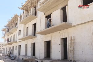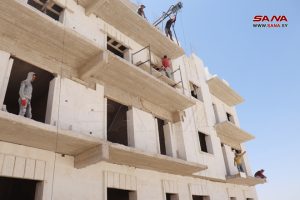 ومن فرع الإنشاءات العسكرية بحلب بين المهندس نوار ديوب مدير مشروع أعمال الهيكل والإكساء بالمحاضر السكنية الأربعة في منطقة المعصرانية أن أعمال البناء تتم على مدار الساعة لتسليمها ضمن المدة المحددة، مضيفاً إن كل محضر يتألف من قبو وطابق أرضي وأربعة طوابق متكررة تضم 30 شقة سكنية، ليبلغ إجمالي عدد الشقق 120 شقة.