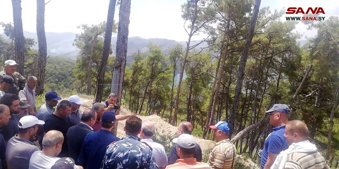 وعلى محور السكرية طوروز تفقد الوزير مخلوف والمحافظ هلال إجراءات فرق الإطفاء لتطويق النيران، وإخمادها في هذا المحور.