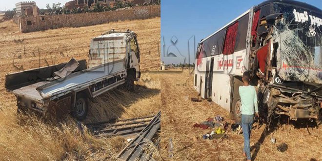 وذكرت وزارة الداخلية في بيان لها أن مركبة نوع (باص بولمان) اصطدمت مع مركبة شحن كبيرة نوع (آيسوزو) على أوتستراد (دمشق _حلب) بالقرب من مفرق قرية تل حدية التابعة إلى ناحية الزربة بريف حلب، ما أدى إلى تدهور المركبتين وخروجهما عن الطريق إلى الأراضي الزراعية.