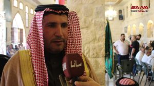 وفي تصريح لمراسل سانا قال منسق الملتقى وأحد وجهاء قبيلة السادة البكارة وعضو مجلس الشعب عمر الحسن الباقر: “إن اجتماع القبائل والعشائر العربية والكردية والتركمانية، وكافة أطياف المجتمع السوري والنخب الوطنية والفعاليات الاقتصادية هو للتأكيد على قول كلمة لا للاحتلالين الأمريكي والتركي ومن والاهما من فصائل انفصالية وإرهابيين ، يعيثون فساداً في الأراضي السورية”، داعياً جميع أبناء القبائل والعشائر العربية للوقوف في خندق واحد مع رجال الجيش العربي السوري لتحرير تراب الوطن من المحتل.