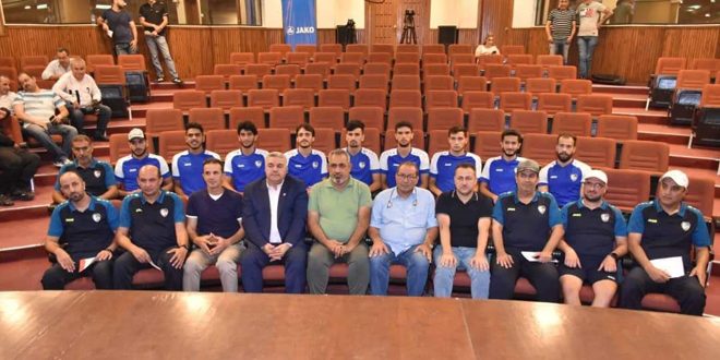 كرم اتحاد كرة القدم منتخب سورية الأولمبي وكادره الفني والإداري اليوم بعد نيله الميدالية الفضية بدورة الألعاب الرياضية العربية، التي أقيمت مؤخراً في الجزائر.