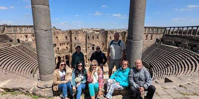 وزارت مجموعة تشيكية ضمت 9 سواح مدينة بصرى الشام، لافتين إلى الأهمية التاريخية والعمرانية للمدرج والمسرح الروماني الذي ما زال شامخاً منذ نحو ألفي عام.