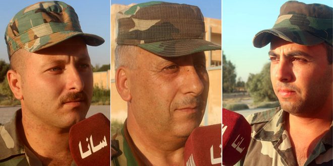 وختم المقاتل سعود حديث ثلة من المقاتلين لـ “سانا” قائلاً: نحن رجال الجيش العربي السوري بدير الزور سائرون على درب الشهداء الذين أناروا لنا الطريق في الدفاع عن سورية، لتبقى عزيزة كريمة رغم كل حقد المتآمرين، وستبقى على الدوام قلعة عصية على الأعداء الذين لم ولن يظفروا بحبة تراب من أرضها الطاهرة.