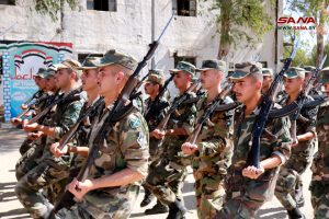 الطالب الضابط حسين قال: إن الجيش العربي السوري “كان ومازال منبع الرجولة والرجال، وهو ما تؤكده الملاحم التي سجلها عبر تاريخه والتي خاضها رجاله الأوفياء الذين قدموا أرواحهم ليبقى الوطن منيعاً عزيزاً، رغم كل المؤامرات والهجمات التي حاولت النيل منه”، مقدماً التهنئة “لرفاق السلاح على الجبهات وفي ميادين القتال، ونعاهدهم على السير على دربهم في الدفاع عن تراب بلدنا الغالي”.