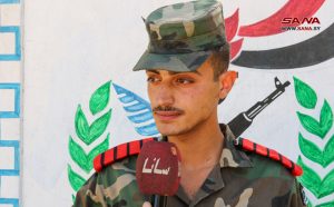 الطالب الضابط محمد أشار إلى أن “جيشنا ومنذ تأسيسه حقق الانتصار تلو الانتصار، وحرر الأرض في حرب تشرين التحريرية، وهو اليوم يخوض المعارك الحاسمة في ملاحقة المجموعات الإرهابية التي حاولت العبث بأمن الوطن والشعب مقدماً التضحيات والدماء، وبهذه المناسبة العظيمة أقدم التحية لكل شهيد ولكل جريح روى بدمائه أرض الوطن، ونعاهد قائد الوطن وأهلنا على متابعة التدريب وتلقي علومنا العسكرية لنكون جنداً أوفياء في صفوف جيشنا البطل”.