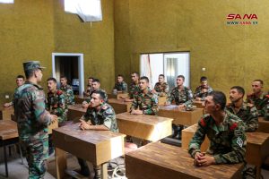 وبمناسبة ذكرى تأسيس الجيش العربي السوري، سانا زارت كلية الإشارة العسكرية في حمص، وهي صرح شامخ للعلوم العسكرية، والتقت الطلاب المتدربين خلال تلقيهم التدريبات البدنية وتحصيل العلوم العسكرية في مخابر الكلية وساحاتها، حيث قال الطالب الضابط علي: “نحن طلاب كلية الإشارة العسكرية، وبمناسبة عيدنا عيد الجيش العربي السوري نؤكد أننا سنسير على خطى الآباء والأجداد ورفاق السلاح في بذل دمائنا فداءً للوطن، وسنتابع تحصيلنا العلمي العسكري بكل تفان، لنكون جنداً أشداء متسلحين بالعلم والإرادة للذود عن ترابنا ووطننا الغالي”.