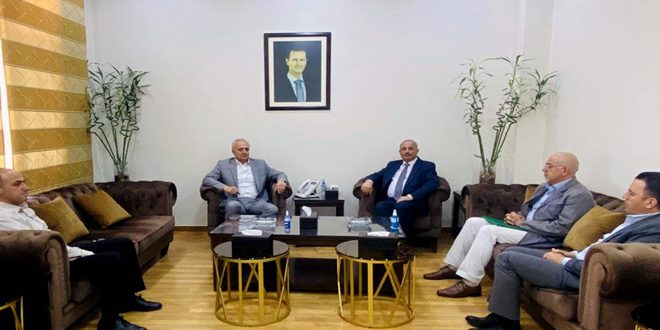 تركز اللقاء الذي جمع وزير النقل المهندس زهير خزّيم مع القائم بأعمال سفارة جمهورية العراق بدمشق ياسين شريف الحجيمي على قضايا التعاون المشترك في أنماط النقل بين البلدين.