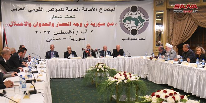 تحت شعار “مع سورية في وجه الحصار والعدوان والاحتلال” انطلق اليوم في فندق الشام بدمشق اجتماع الأمانة العامة للمؤتمر القومي العربي.