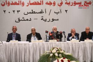 من جهته، أشار المحامي أحمد حسن من لبنان إلى أن وجودهم اليوم في دمشق لإعلان التضامن في وجه ما تعرضت له سورية خلال العشر سنوات الأخيرة، لافتاً إلى أنها انتصرت بإرادتها وحفاظها على مبادئها التي هي مبادئ الأمة العربية، وأضاف: “اليوم نحن هنا لنقول إننا كنا وسنبقى مع سورية شعباً وقيادة وجيشاً ومؤسسات ومع وحدة سورية وضد كل ما تتعرض له من ضرب لهويتها ودورها”.