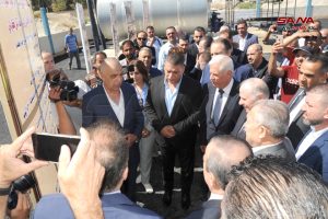 في إطار الدعم الحكومي للقطاعات الإنتاجية وتأمين متطلباتها بما يساهم في زيادة الإنتاج، افتتح رئيس مجلس الوزراء المهندس حسين عرنوس اليوم المرحلة الأولى من مشروع تجهيز وضخ المياه من تل الصوان في الغوطة الشرقية إلى محطة الضخ في تل كردي بغزارة تصل إلى 12 ألف متر مكعب مياه يومياً ثم إلى المدينة الصناعية بعدرا.