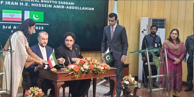 وقع وزير الخارجية الإيراني حسين أمير عبد اللهيان ووزير خارجية باكستان بيلاوال بوتو زرداري اليوم أربع وثائق تعاون ومذكرات تفاهم، لزيادة التنسيق بين البلدين في مجالات عدة.