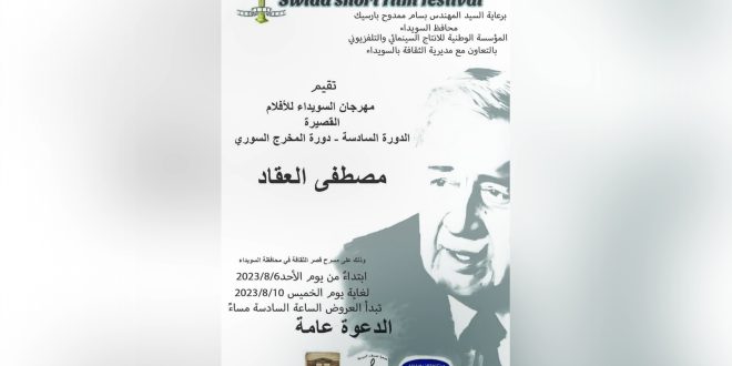 تنطلق مساء يوم الأحد القادم في قصر الثقافة بمدينة السويداء عروض مهرجان السويداء للأفلام القصيرة، بدورته السادسة التي تحمل اسم المخرج السينمائي السوري العالمي مصطفى العقاد.