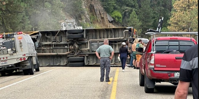 أصيب 11 شخصاً جراء حادث سير، إثر انقلاب حافلة على طريق سريع متعرج في ولاية أيداهو، شمال غرب الولايات المتحدة.