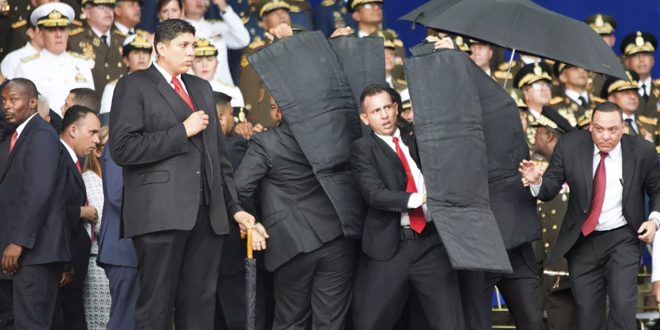 يذكر أنه تمت في الـ 4 أب من عام 2018 مهاجمة المنصة الرئاسية خلال عرض عسكري في العاصمة الفنزويلية بمسيرات مفخخة، ولم يصب مادورو وزوجته في الحادث الذي أسفر عن إصابة 7 من العسكريين بجروح.