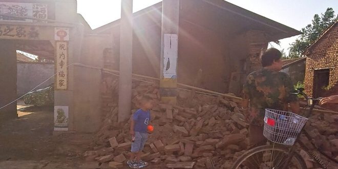 أصيب 12 شخصاً فجر اليوم جراء هزة أرضية بقوة 5ر5 درجة على مقياس ريختر، ضربت محافظة بينغيوان في مدينة دتشو بمقاطعة شاندونغ شرق الصين.