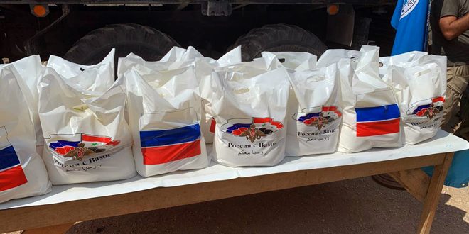 وذكر الرائد ألكسي يبلوتشنيكوف المسؤول عن توزيع المساعدات في تصريح لمراسل سانا أن الدفعة شملت خمسة أطنان من المواد الغذائية هي “رز وسكر وطحين وشاي وزيت وحليب”.