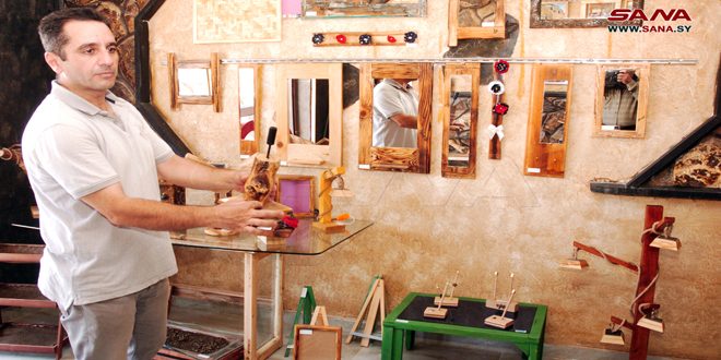 فن التعامل مع الأخشاب الطبيعية الذي تعلمه الشاب مازن حاتم من والده شكيب الذي توارثه بدوره عن جده وظفه بإحياء هذه المهنة بقالب عصري جديد ضمن مشروع متناهي الصغر، أطلقه قبل نحو عامين بمدينة السويداء.