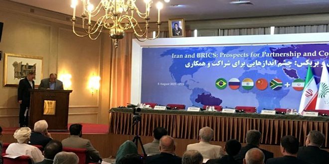 ويشارك في المؤتمر الذي يستمر ليوم واحد مسؤولون وسفراء من خمس دول أعضاء في مجموعة بريكس، بما في ذلك الهند والصين والبرازيل وروسيا وجنوب إفريقيا إلى جانب سفراء ودبلوماسيين من السفارات الأجنبية في طهران، إضافة إلى المسؤولين والمديرين والخبراء من المؤسسات الإيرانية الحكومية والخاصة.