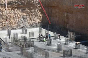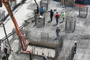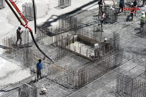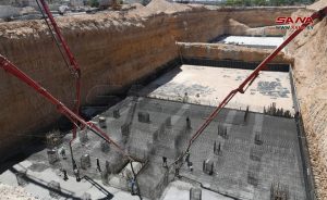مدير فرع دمشق للشركة المهندس عمار حيدر أوضح في تصريح لمراسلة سانا أنه بعد الانتهاء من عمليات الحفر وإجراء السبور وفحص التربة تبين وجود حاجة لصب كميات أكبر في قاعدة البرج الذي يصل ارتفاعه إلى 240 سنتمتراً، وذلك بشكل مستمر على مدى 48 ساعة متواصلة.