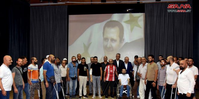 الجريح سائر حسين الحاصل على المركز الأول على مستوى المحافظة بين الجرحى، بامتحانات شهادة الثانوية العامة، الفرع الأدبي، ألقى كلمة رفاقه الجرحى التي رأى فيها أن المسيرة الطويلة لجرحى الوطن في الدفاع عنه تكللت بالمساهمة الحقيقية في مضمار العلم والإنتاج، وأن الجرحى هم أصحاب عقول نيرة صانوا الوطن بأجسادهم ليبقى صامداً، وهم الآن في مرحلة العلم وفاءً لسورية بلد الثقافة والحضارة.