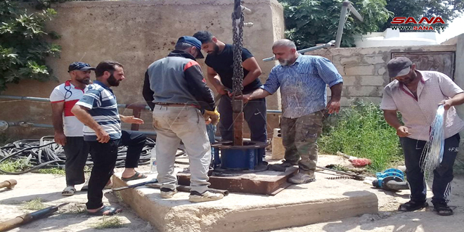 رئيس مجلس البلدة خالد الكردي أوضح لسانا أن أعمال الصيانة شملت اللوحة الرئيسية للتغذية الكهربائية والغاطسة، وذلك من خلال التعاون مع مؤسسة المياه بتأمين الرافعة والمجتمع المحلي الذي يرفد المجلس بكل الاحتياجات المطلوبة، وبلغت غزارة الضخ 25 متراً مكعباً بالساعة.