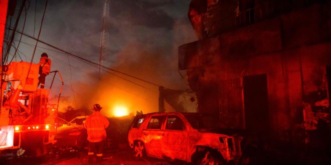 وأضافت خدمة الطوارئ: إن السلطات مازالت تحاول إخماد الحريق وسط المباني المنهارة والمركبات المتفحمة.