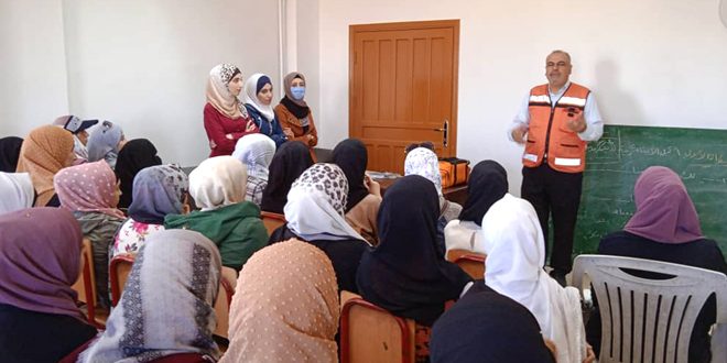 وقالت الخالد: عملنا على تحديد بعض المشاكل التي يعاني منها المجتمع وقمنا بالتعاون مع الجهات الحكومية بإطلاق دورة إسعافات أولية في بلدة تسيل بريف درعا شارك فيها نحو 300 متدرب ومتدربة، مبينة أن الدورة تم تقسيمها إلى أربع مراحل جرى خلالها التدريب على الإسعافات الأولية بإشراف كادر تدريبي متخصص من مديرية صحة درعا، بالتعاون مع كادر الفريق.
