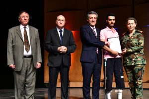 كرمت محافظة دمشق اليوم بالتعاون مع وزارة التربية 108 طلاب من الأوائل على مستوى محافظة دمشق في شهادتي الثانوية العامة والتعليم الأساسي بينهم 69 من مشروع جريح الوطن.